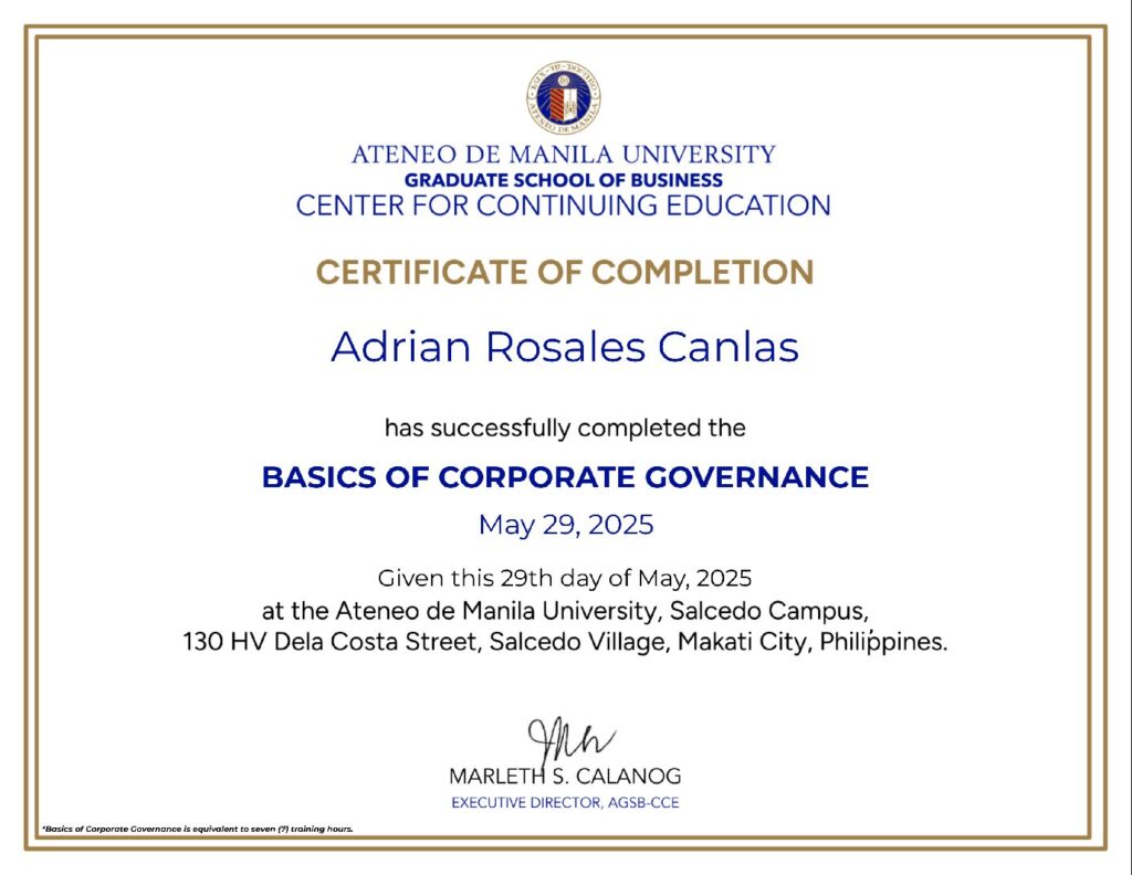 ANNUAL CORPORATE GOVERNANCE REPORT FOR 2024