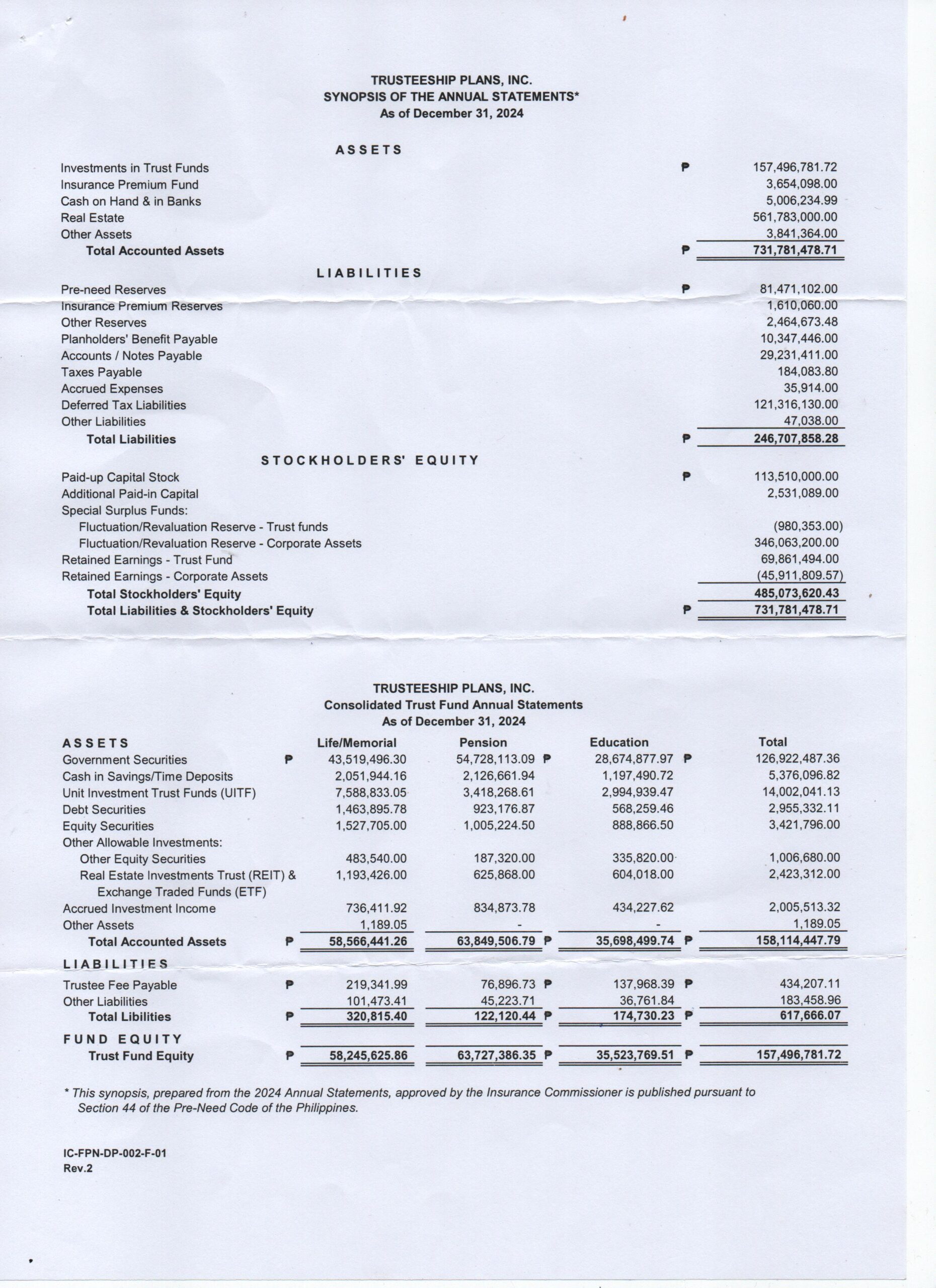 Approved 2024 TPI Synopsis of the Annual Statement and Consolidated Trust Fund Statement Audited Financial Statement 2024 Approved 2023 TPI Synopsis of the Annual Statement and Consolidated Trust Fund Statement